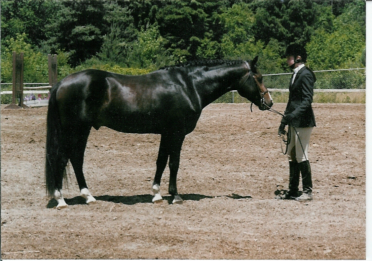 In 1988, Mollie Butler asked me to ride her young Stallion GlanNant Nauticus. I learned a lot that summer. Some good, some not so good. Last I knew Nauticus had been gelded and was doing quite well on the hunter circuit down south. I remember the days when we couldn't make it around a course without rearing! Here we are modeling at the Elmira Charity Horse Show